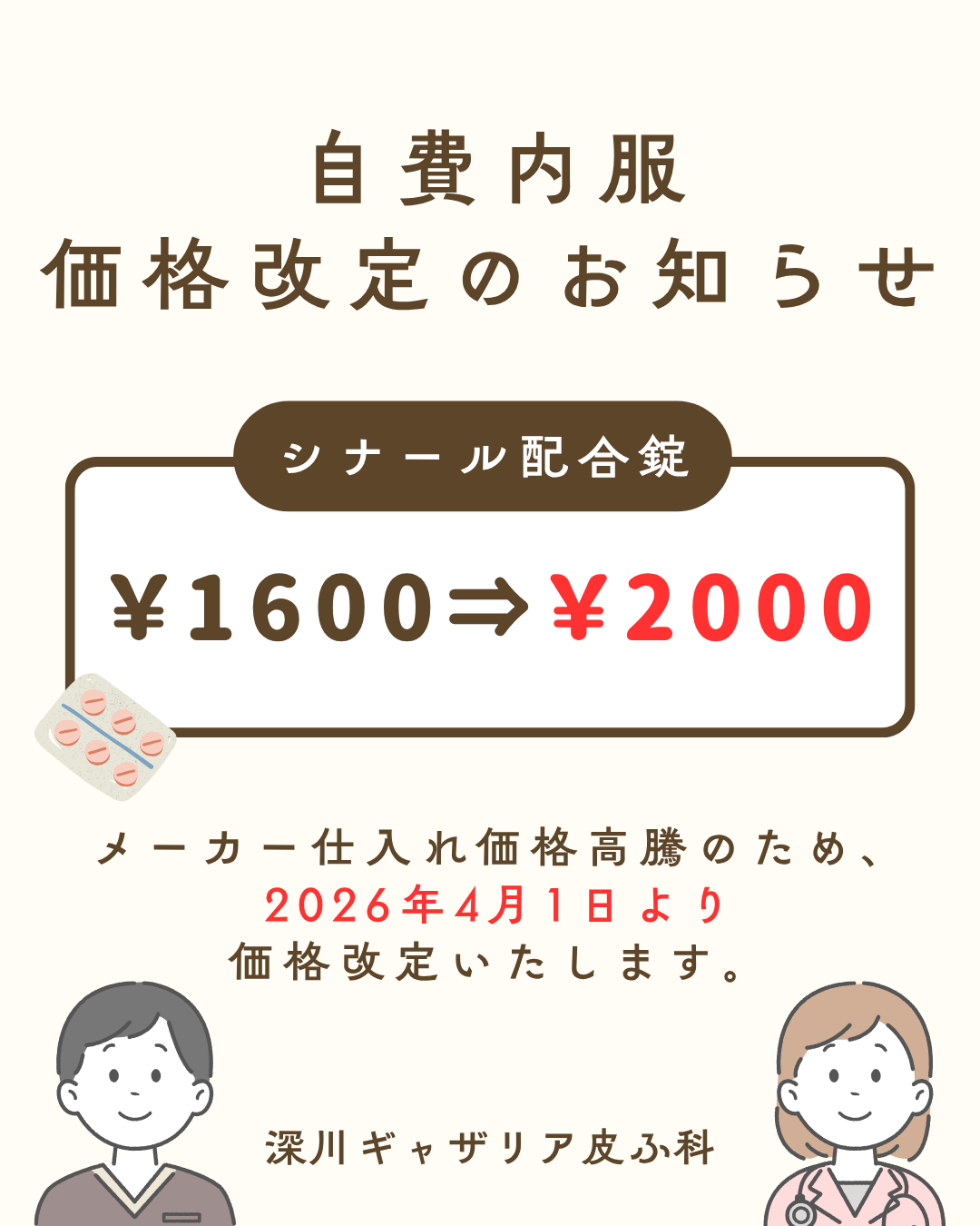 シナール配合錠(1か月分)がメーカー仕入れ価格高騰のため、2026年4月1日より価格改定いたします。