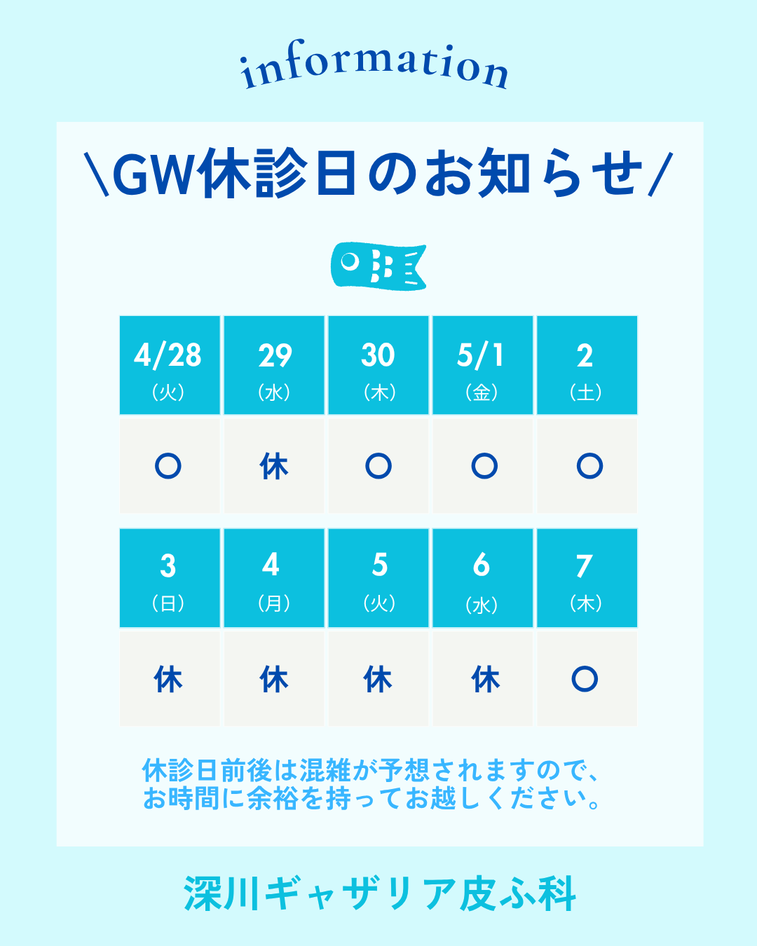 ご不便をおかけしますが、ご理解賜りますようお願い申し上げます。 - GW休診日 [2026年4月9日18時10分更新]