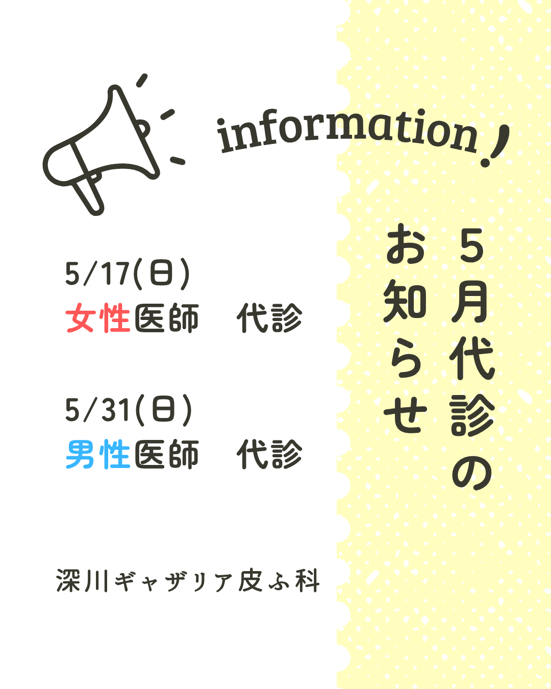- 5月代診のお知らせ [2026年4月20日10時09分更新]